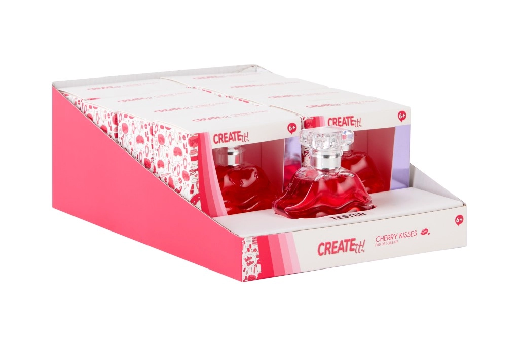 Lehká a zábavná toaletní voda Create it! Cherry Kisses je skvělou volbou pro každý den – do školy, do práce i na víkendové výlety. Kombinuje hravou sladkost třešní se svěžími akcenty, které působí příjemně a nevtíravě.