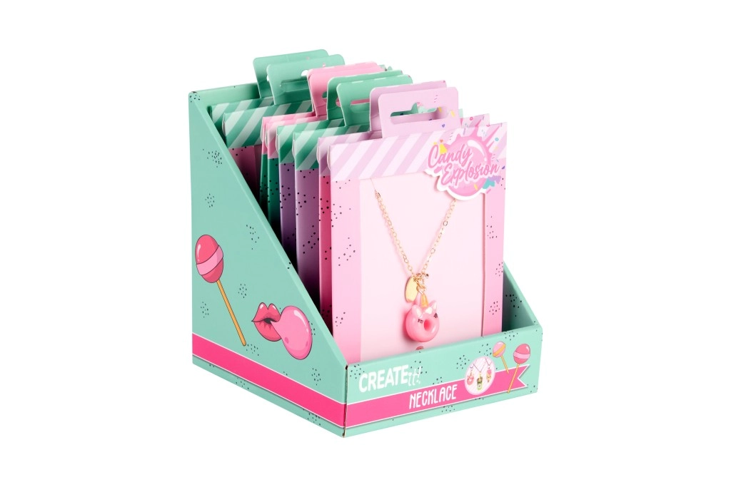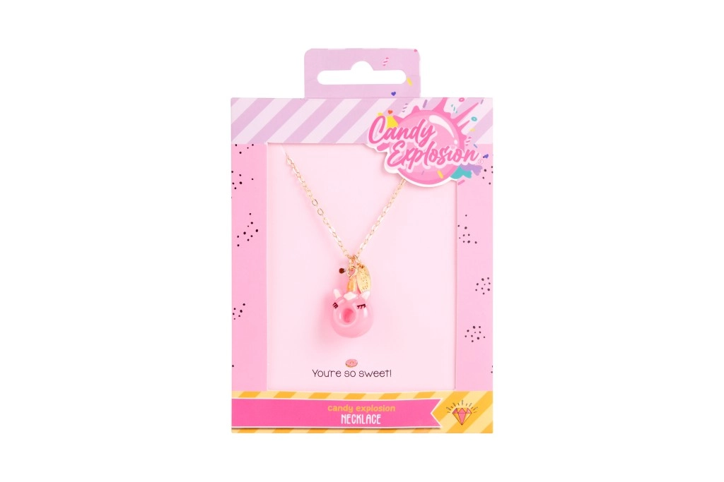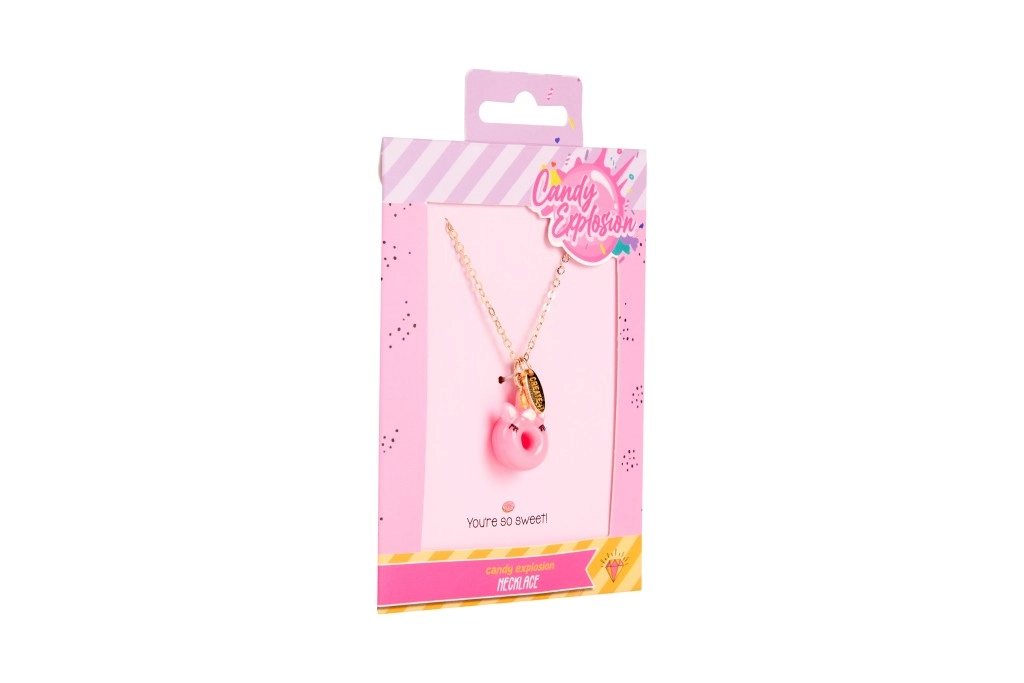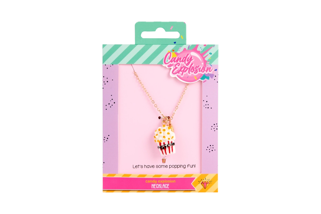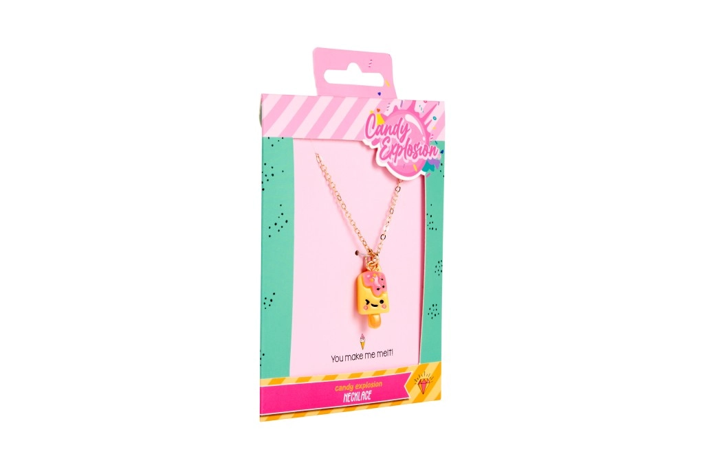 Každý náhrdelník je na stylové kartičce Candy Explosion s otvorem pro zavěšení – ideální jako malý dárek pro radost.