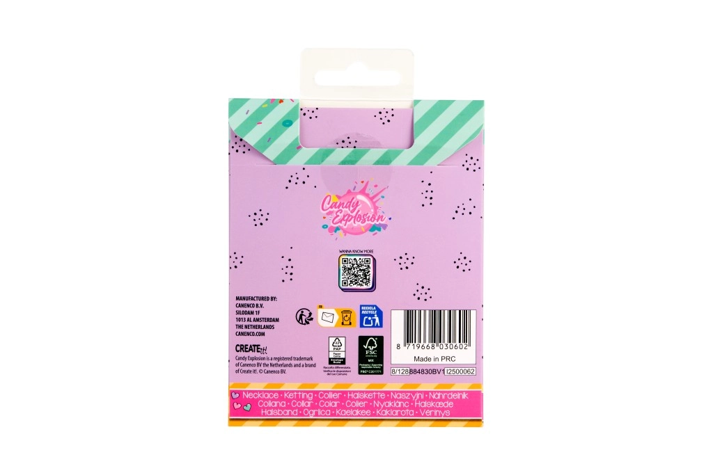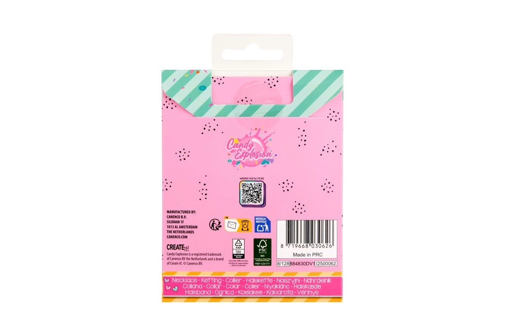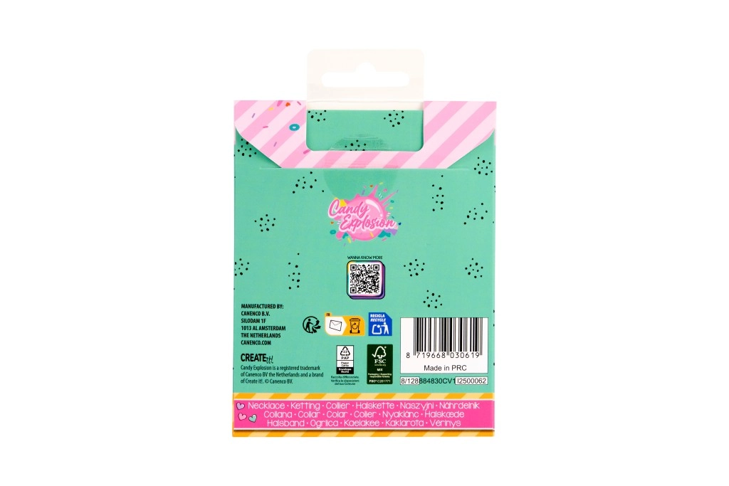 Každý kousek je dodán na stylové kartičce Candy Explosion s otvorem pro zavěšení, takže je skvělý i jako malý dárek. Barevné přívěsky s lesklou povrchovou úpravou dodají hravost každodennímu stylu a stanou se oblíbeným doplňkem.