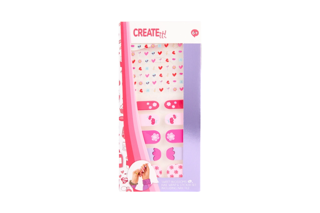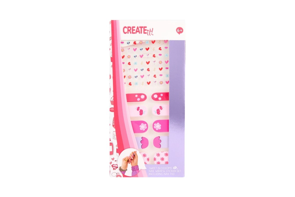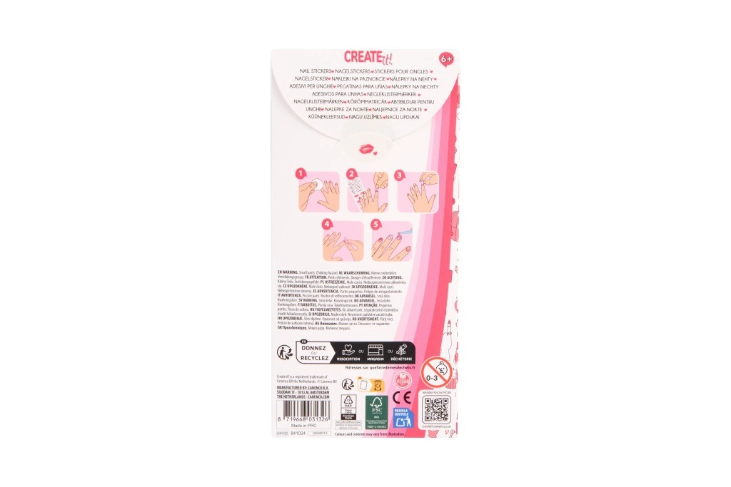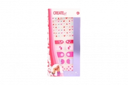 Rozjasněte svůj nail art se sadou CREATE IT! – samolepky na nehty v barevných a hravých motivech a 4 pilníky různé hrubosti pro dokonalou úpravu. Snadná aplikace, dlouhá výdrž a nekonečné možnosti kombinování motivů pro párty, školu i každodenní nošení.