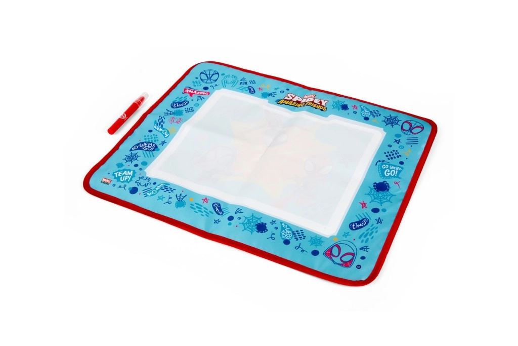 Tato kreativní podložka s motivem SPIDEY je skvělým způsobem, jak děti zaujmout malováním bez barev a skvrn. Speciální vodní pero zanechává na podložce barevné stopy, které po zaschnutí zmizí, takže zábava může pokračovat stále dokola.