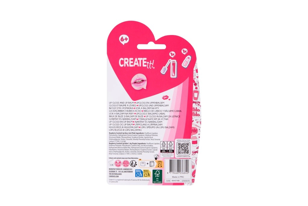 Praktická a stylová sada CREATE IT! spojuje hydratační balzám a lesk na rty v jedné chytré krabičce. Flip-top víčko a odolné plastové pouzdro chrání obsah a díky mini řetízku si ho snadno připnete na klíče, batoh nebo tašku. Perfektní volba pro děti i teenagery, kteří chtějí mít péči o rty vždy po ruce.