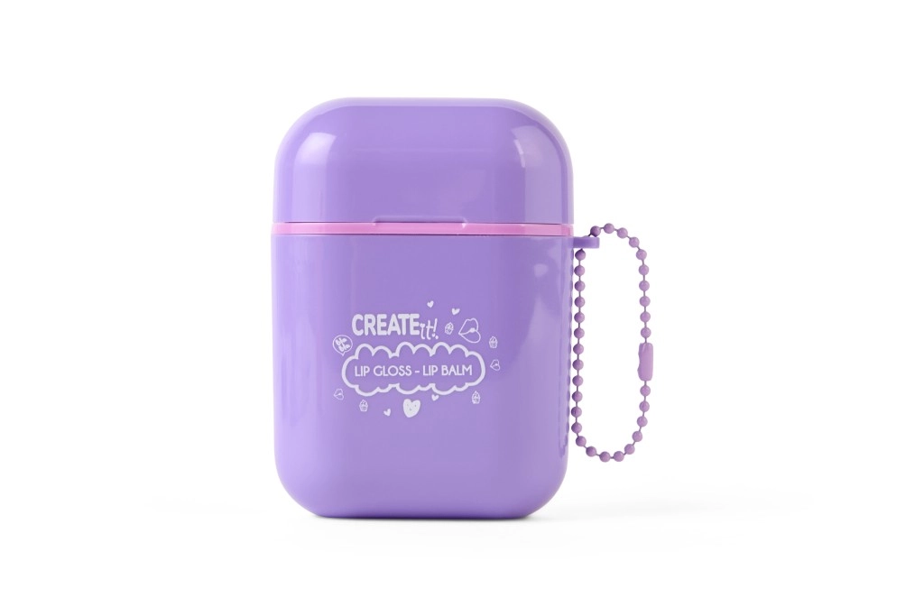 V balení najdete krabičku ve tvaru pouzdra na sluchátka, balzám na rty a lesk na rty. Kompaktní rozměry usnadňují přenášení, zatímco hravé barvy (fialová a růžová) dodají vašemu stylu zábavný dotek.