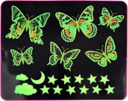 Vytvořte v dětském pokoji kouzelnou atmosféru s dekorativním setem nálepek – barevní motýli ve dne zdobí stěny a v noci jemně září. Součástí jsou i zeleně fosforeskující hvězdičky, měsíc a obláčky. Instalace je snadná a bezpečná, nálepky můžete libovolně kombinovat a vytvářet vlastní kompozice. Ideální jako uklidňující noční světýlko pro děti, které se bojí tmy. Snadná aplikace, jemné noční světlo, kreativní výzdoba.