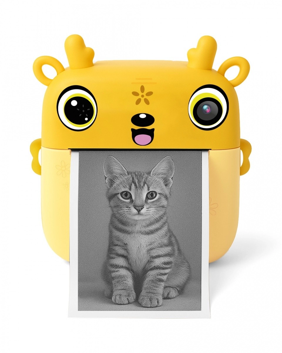 Zařízení tiskne bez inkoustu na papír 57 × 25 mm, je ekonomické a ekologické a podporuje microSD karty až 32 GB pro archivaci fotografií (až 8 Mpx, interpol.) a videí (až 1080p, interpol.). Nabíjení i přenos dat řeší USB‑C, o dlouhou výdrž se stará baterie 1000 mAh. Součástí zábavy jsou i logické hry, které rozvíjejí postřeh a trpělivost.