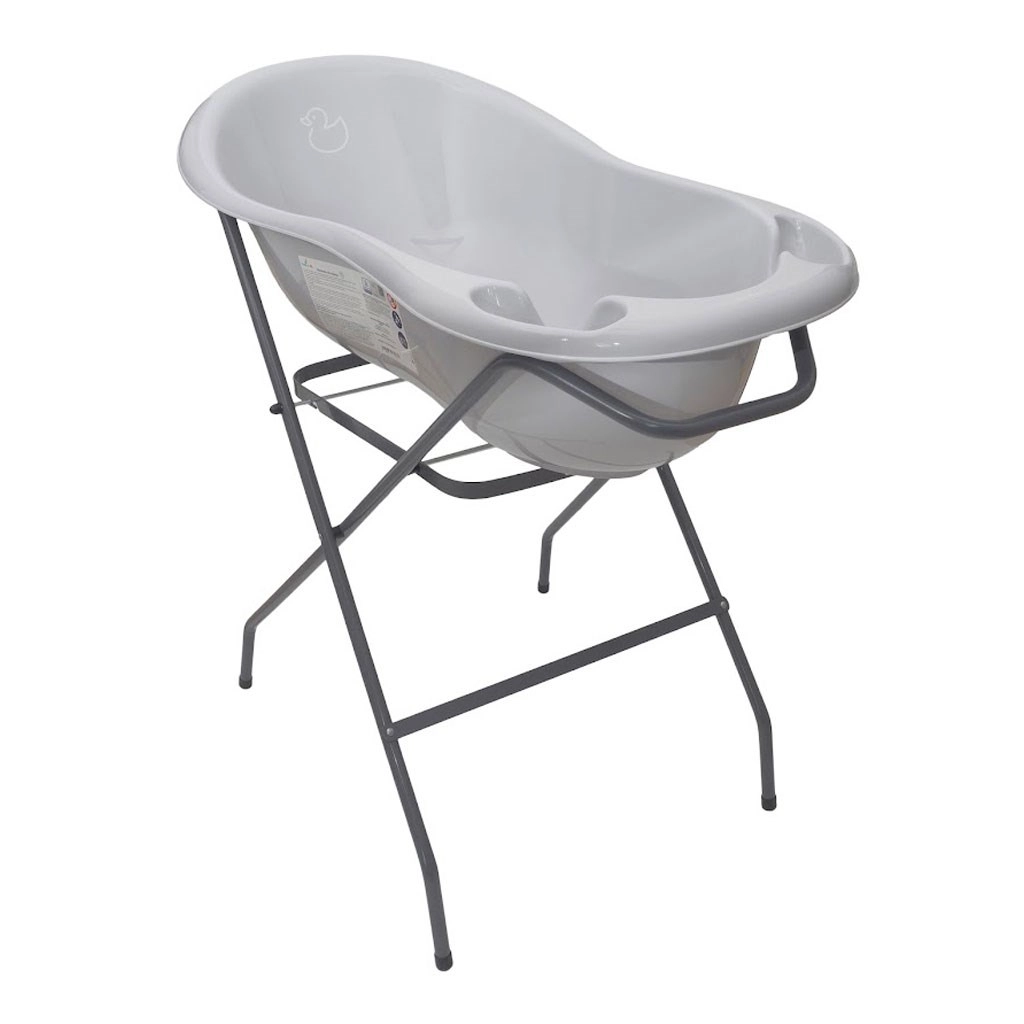 Praktický skládací stojan na vaničku v elegantní grafitové barvě pro pohodlné koupání dětí. Nabízí stabilní oporu, skládací konstrukci do plochého tvaru pro snadné uskladnění a je ideální i do menších koupelen. Maximální nosnost 45 kg.