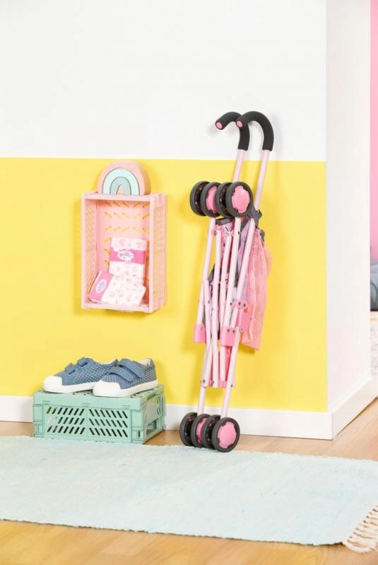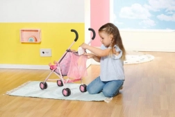 Za sedadlem najdete praktickou nákupní síťku na drobnosti, lahvičku nebo oblíbené hračky. Po dohrání kočárek jednoduše složíte do kompaktních rozměrů, takže nezabere téměř žádné místo. Skvěle se hodí pro panenky o velikosti 36–43 cm a podporuje kreativní, dlouhotrvající hru.