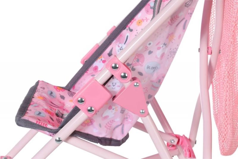 Sedátko s veselým potiskem a bezpečnostními pásy udrží panenku pevně a pohodlně na místě během celé projížďky.