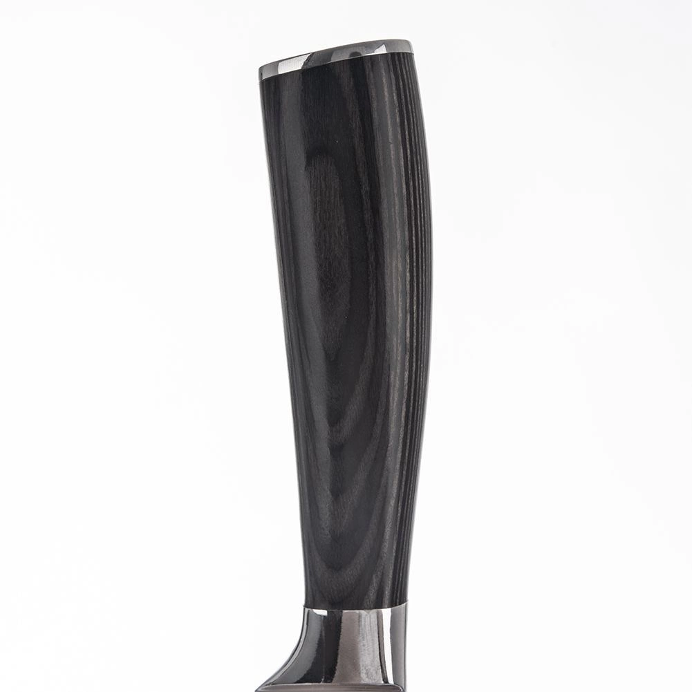 Rukojeť z pakka dřeva je tvarovaná pro jistý úchop a odolá vlhkosti, teplu i působení běžných kuchyňských prostředků. Nůž je ideální pro sekání bylinek, krájení ovoce a zeleniny i porcování masa, přičemž si dlouhodobě udržuje ostrost při správné péči.