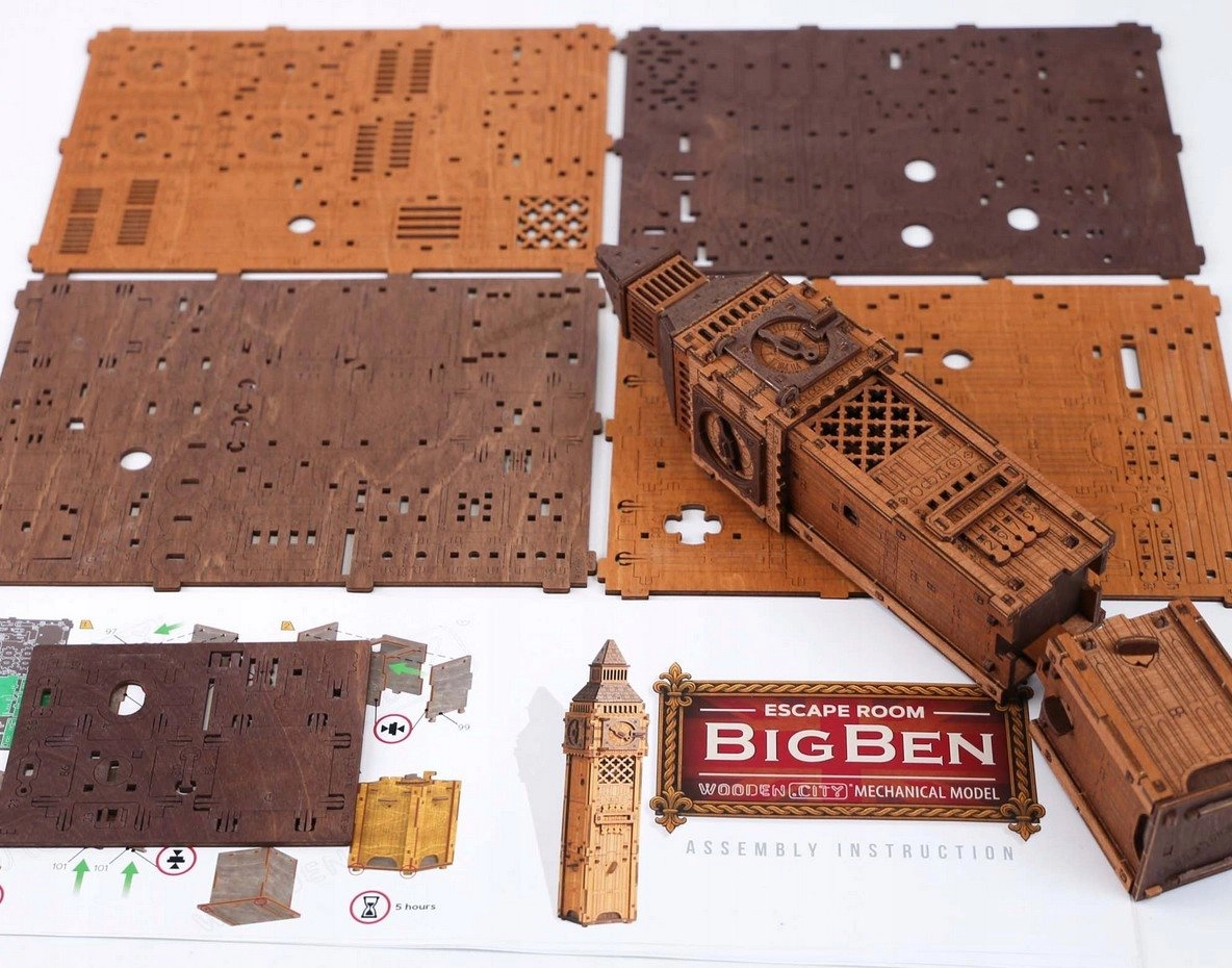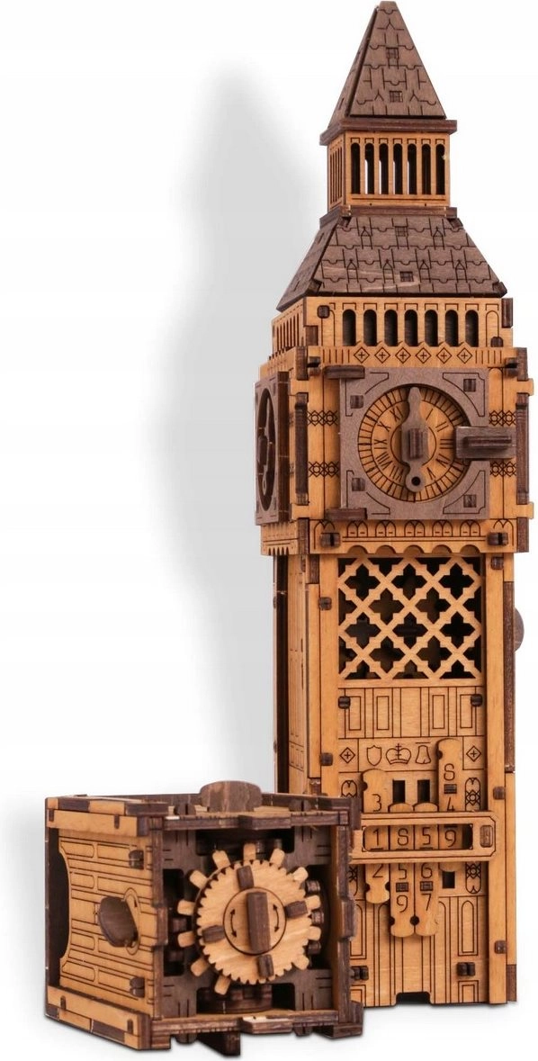 Objevte dřevěné 3D puzzle ze série Escape, které propojuje ikonický Big Ben s chytrým mechanickým hlavolamem. Tento model od WOODEN CITY je nejen elegantní dekorací, ale i fascinující logickou výzvou na dlouhé hodiny. Skládá se bez lepidla a nářadí, z kvalitní březové překližky, a potěší promyšlenými detaily i plynulým chodem mechanismu.
