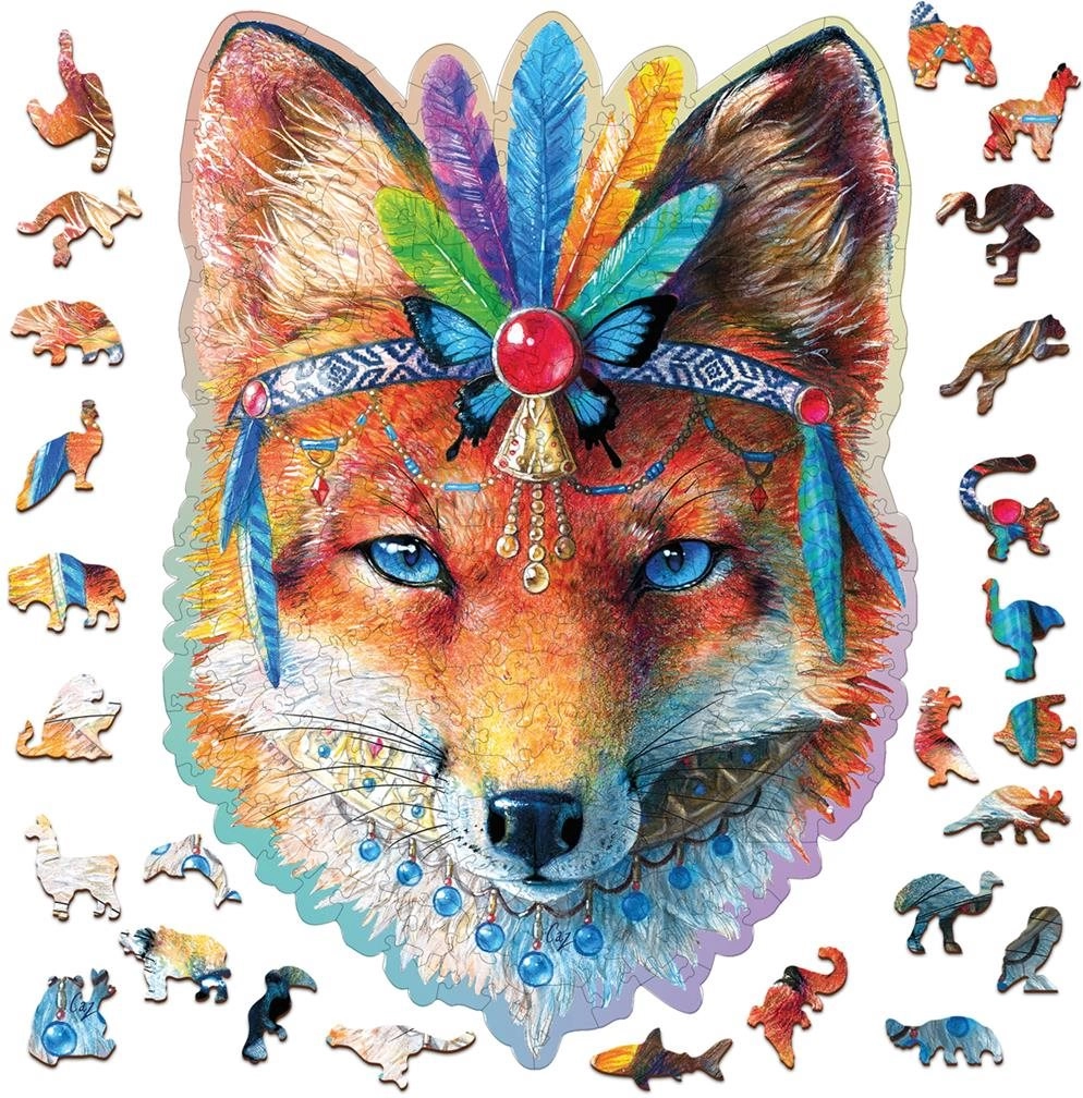 Dřevěné puzzle WOODEN CITY Mystická liška je krásná výzva pro děti i dospělé. Díky pevným dřevěným dílkům a originálním tvarům je skládání zábavné, kreativní a zároveň relaxační. Motiv lišky vynikne jako designová dekorace po složení.