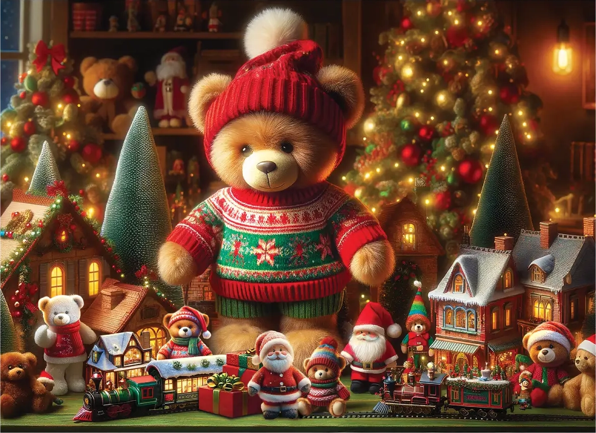 Dřevěné puzzle Vánoční medvídek – 1010 dílků