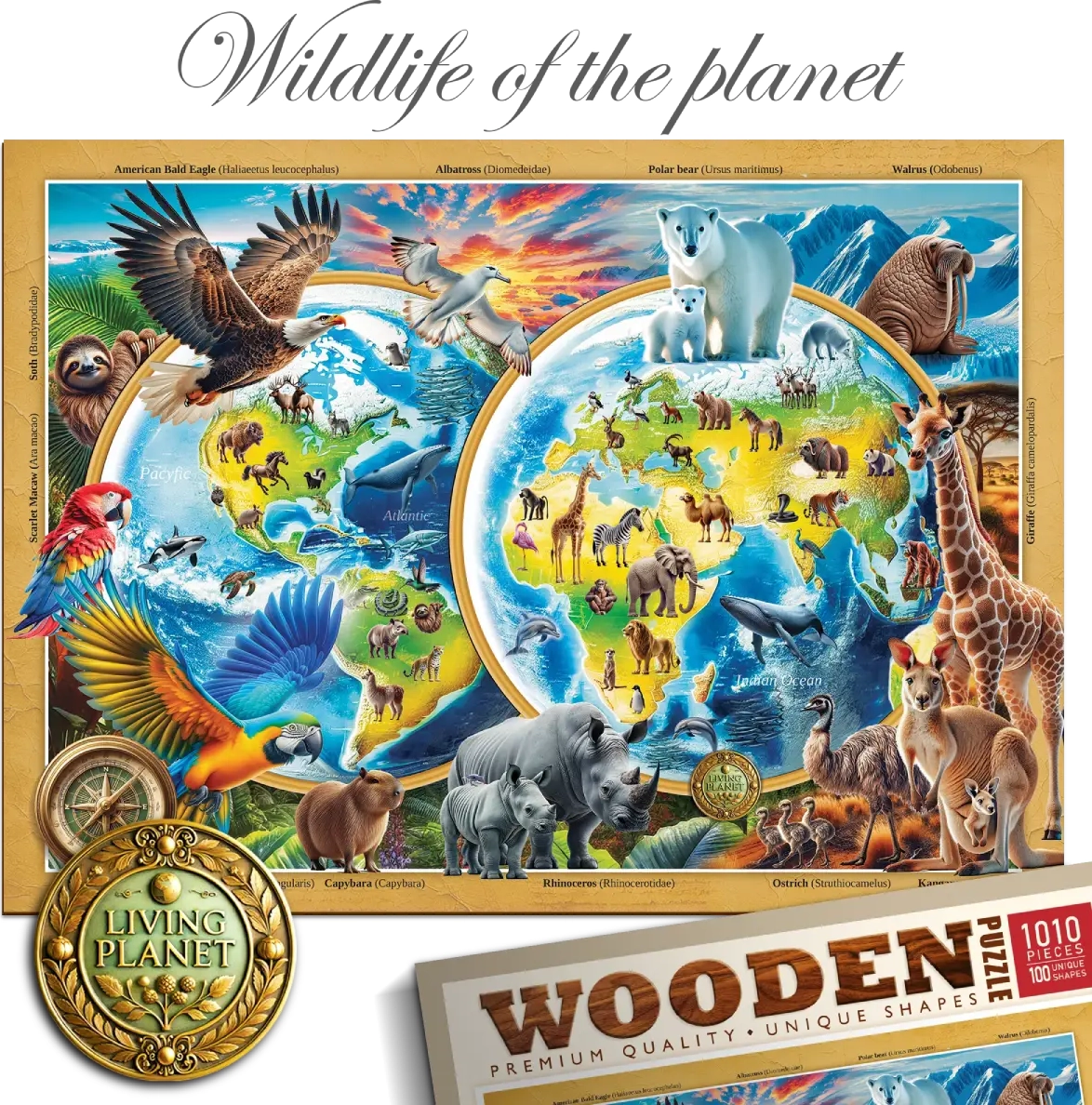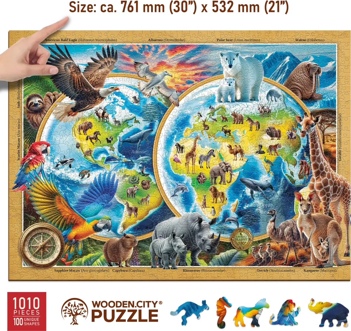 Objevte radost ze skládání s dřevěným puzzlem WOODEN CITY Planeta divokých zvířat, které nabízí až 1010 dílků a zábavu pro celou rodinu. Uvnitř najdete 100 unikátně tvarovaných dílků, hladké hrany bez třísek díky laserovému zpracování a samostatnou předlohu pro pohodlné skládání. Produkt je eko-friendly a bez plastů – skvělý dárek pro každou příležitost.