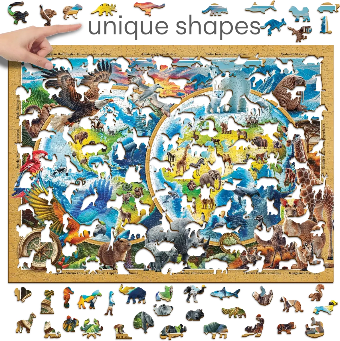 Dřevěné puzzle WOODEN CITY Planeta divokých zvířat zaujme bohatou grafikou a kvalitním dřevěným provedením, které je příjemné na dotek a odolné. Díky preciznímu laserovému řezu se dílky dokonale propojují a skládání je plynulé a bez třísek. Součástí balení je také předloha, která usnadní orientaci i méně zkušeným skladačům.