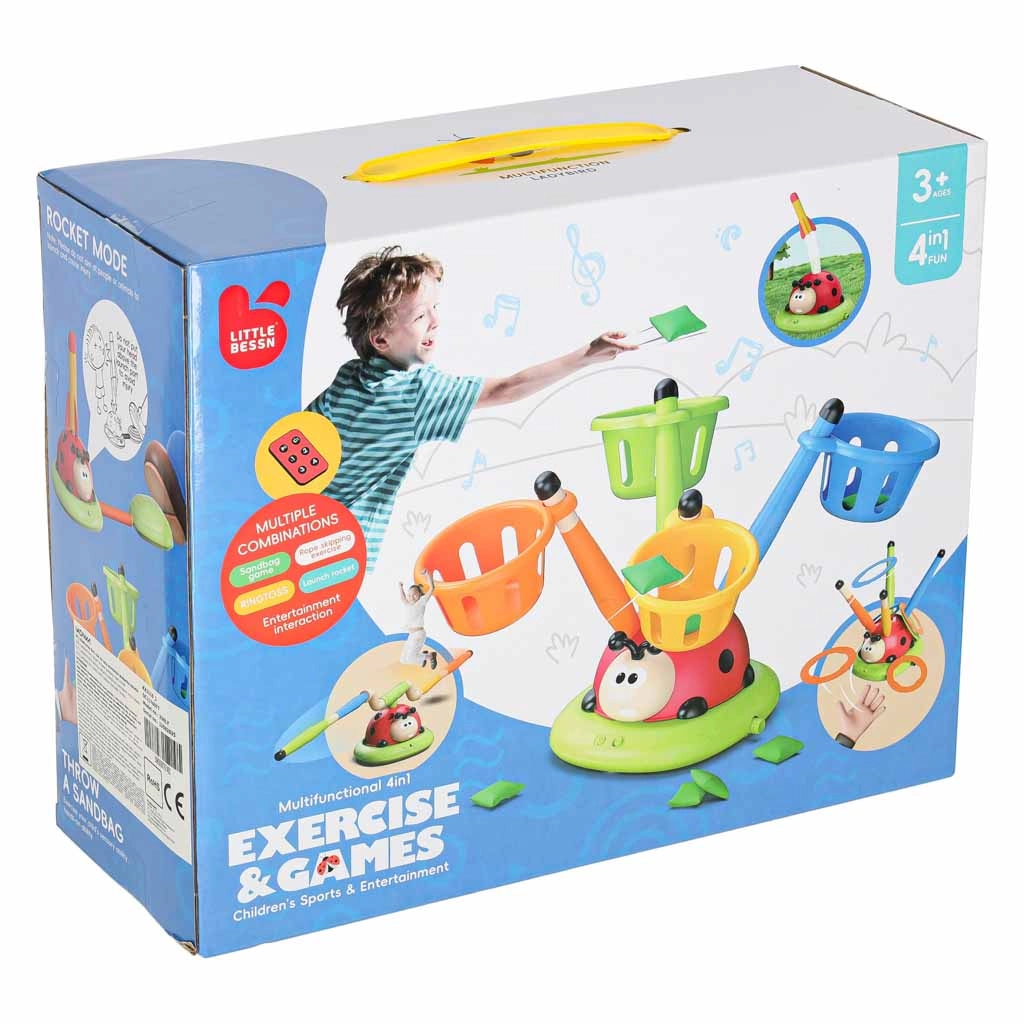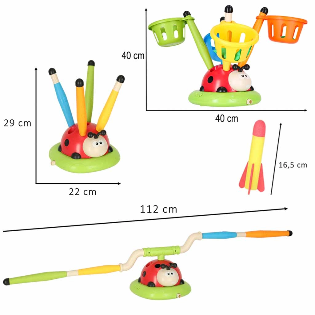 Hra, která nenechá sedět: rotující skákací překážka prověří postřeh, vzduchová vystřelovačka vyšle rakety do výšky a hod na cíl přidá špetku sportovní soutěže. Interaktivní beruška se světly a zvuky motivuje k pohybu a mění každé kolo v novou výzvu.