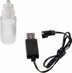 V balení najdete: RC auto, dálkový ovladač, USB nabíječku, lahvičku na vodu pro tvorbu páry a návod k použití. Produkt je dodáván v kartonové krabičce s plastovým okénkem – skvělé i jako dárek.