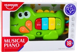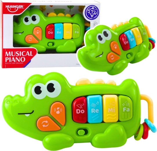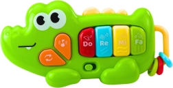 Barevné interaktivní pianinko ve tvaru krokodýla potěší každého malého objevitele. Nabízí čtyři klávesy Do, Re, Mi, Fa, veselé melodie a zvuky a doplňkové manipulační kroužky pro rozvoj jemné motoriky. Díky kompaktním rozměrům je ideální na doma i na cesty a bezpečné provedení se zaoblenými hranami je přizpůsobeno dětským ručkám.