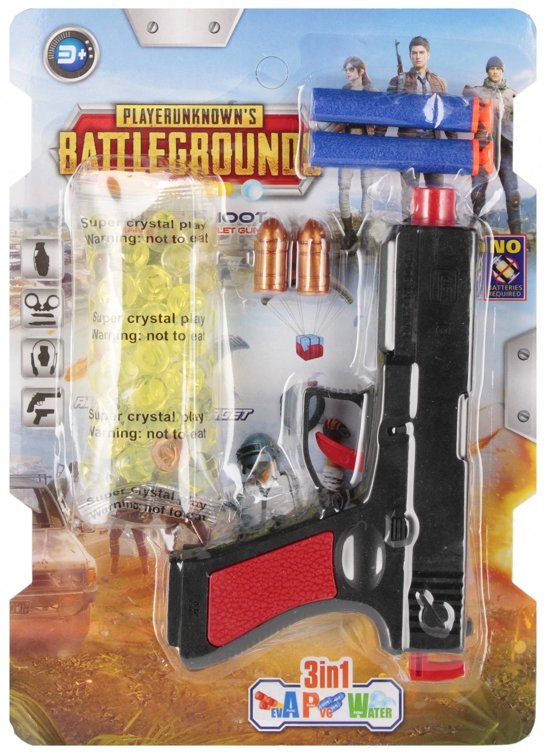 Hledáte hračku, která zabaví děti na dlouhé hodiny? Pistole 3v1 kombinuje tři způsoby střelby v jednom těle – vodní projektily (je potřeba je předem namočit), měkké pěnové šipky a přísavkové náboje. Jednoduchý mechanismus nabíjení a odolné provedení zaručí bezpečnou a zábavnou hru.