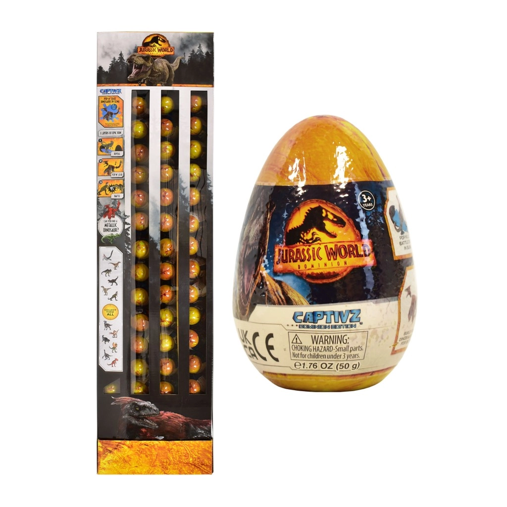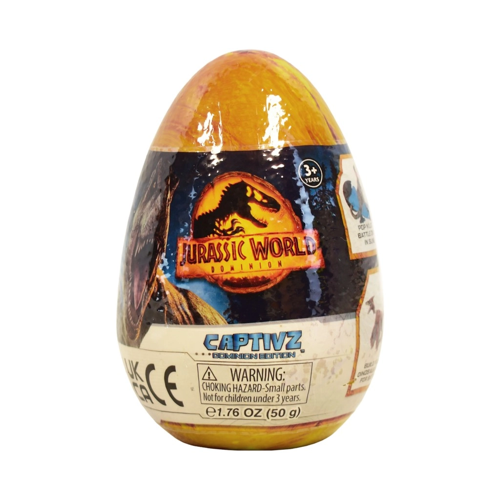 Zažijte napětí z objevování s tajemným vajíčkem se slizem JURASSIC WORLD. Každé vajíčko skrývá sestavitelnou figurku dinosaura ukrytou v jedinečném slizu (nejčastěji jantarový nebo BioSyn Lab), bitevní žeton a sběratelského průvodce. Postavičky jsou inspirovány filmem Jurský svět: Nadvláda a potěší fanoušky všech věkových kategorií.