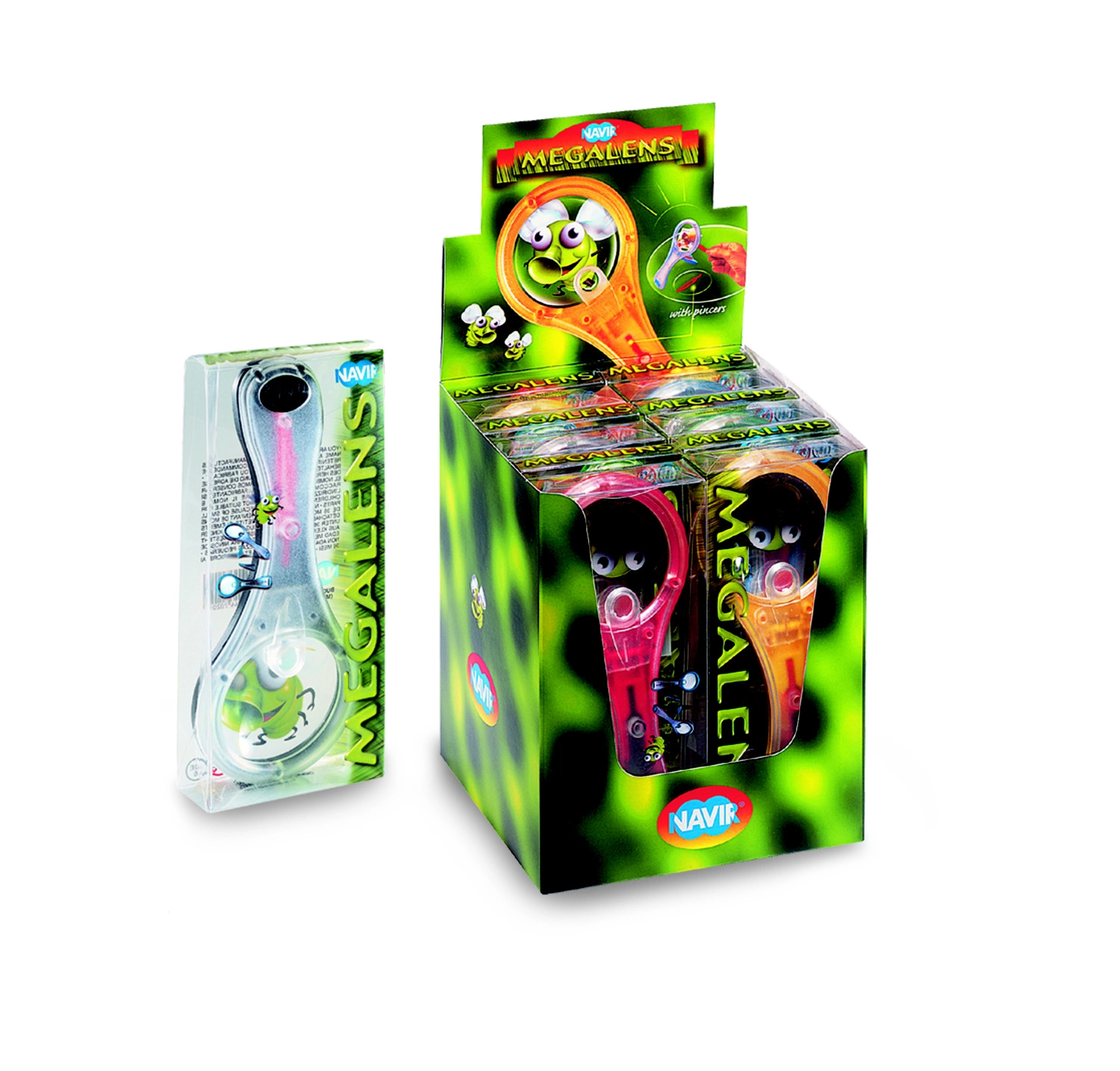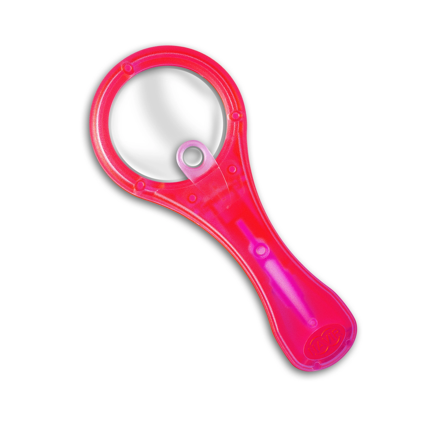 Praktická lupa z ekologického ABS plastu s vloženou druhou čočkou je ideální pro malé průzkumníky od 6 let. Díky rukojeti, která se otevírá jako kompas, lze lupu pohodlně položit na stůl a používat ji bez držení v ruce. Uvnitř rukojeti je navíc odnímatelná pinzeta pro snadnou manipulaci s drobnými předměty. Velká čočka 60 mm, malá čočka 13 mm, zvětšení 3× a 7×, ekologický materiál, mix barev.