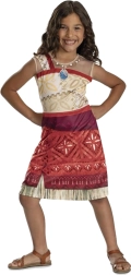 Kostým je navržen pro děti ve věku 7–8 let (doporučená výška 124–135 cm) a skvěle vystihuje vzhled oblíbené hrdinky z filmu Vaiana Moana 2. Asymetrické ramínko, potisk kmenových vzorů, vrstvený vzhled sukně a „trávové“ lemy dodávají převleku autentický charakter.