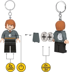 Rozzařte své klíče i batoh ikonickou postavou Ron Weasley z LEGO Harry Potter. Stylová klíčenka v podobě minifigurky nabízí jasné LED světlo aktivované stiskem, odolné provedení a praktickou kovovou karabinu/kroužek. Skvělé jako dárek pro fanoušky a užitečné pro hledání klíčové dírky či věcí ve tmě.