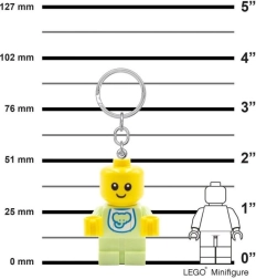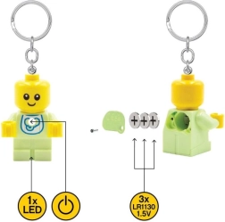 Přívěsek LEGO ve tvaru miminka potěší malé i velké fanoušky. Kompaktní tělo minifigurky je připevněno k pevnému kovovému kroužku a řetízku, takže spolehlivě udrží klíče a zároveň poslouží jako praktická LED svítilna v každodenních situacích.