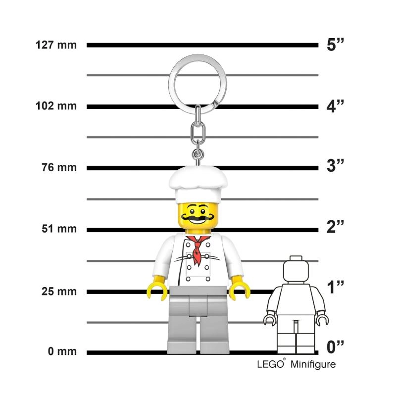 Oblíbená minifigurka ve verzi šéfkuchaře promění vaše klíče v stylový doplněk, který zároveň pomůže ve tmě. Jednoduše stiskněte tlačítko a jasné bílé LED světlo vám posvítí na zámek nebo v batohu.