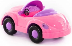 Roztomilé růžovo‑fialové kabrio auto Veronika potěší každou malou řidičku. Díky odolnému plastovému provedení, velkým kolům pro plynulou jízdu a bezpečné konstrukci bez malých dílů je ideální pro tlačení a rolování, rozvoj motoriky a fantazie.