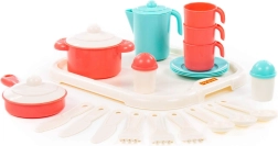 Stylová dětská čajová sada pro tři s tácem Nastenka promění každou hru v pravou čajovou párty. Obsahuje vše potřebné pro servírování čaje a podporuje rolové hry, sociální dovednosti a fantazii. Ideální hračka pro děti od 3 let.