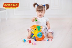 Mašinka je vyrobena z odolného plastu, má hladké hrany a příjemné barvy. Dítě může mašinku snadno táhnout za šňůrku a vkládat do ní tvary na správná místa. Hodiny s ručičkami podporují základní orientaci v čase formou hry.
