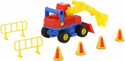 Objevte robustní dětský bagr ConsTruck od značky WADER – barevné stavební vozidlo s gumovými pneumatikami, plně pohyblivými částmi a možností mechanické manipulace. Součástí balení jsou 4 kužely a 2 silniční zábrany pro realistickou stavební hru už od 1 roku.
