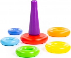 Tato oblíbená hračka pomáhá dětem přirozeně rozvíjet dovednosti formou hry. Šest kroužků různé velikosti se snadno uchopuje a navléká na kužel, což přispívá k rozvoji trpělivosti, logiky a třídění podle velikosti. Pevná základna a hladké zaoblené hrany zajišťují bezpečné používání.