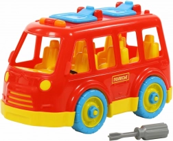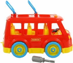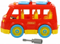 Součástí balení je praktický šroubovák, se kterým lze autobus snadno rozebrat a opět složit. Hračka je bez pohonu, bezpečná a vyrobená z kvalitních materiálů pro dlouhou životnost a bezpečnou hru.