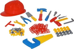 Tato bohatě vybavená sada nářadí nabídne dětem bezpečný a zábavný způsob, jak napodobovat práci dospělých. Různorodé komponenty podporují obratnost prstů, přesnost pohybů i logické myšlení při spojování jednotlivých dílů. Díky přilbě a široké paletě nástrojů si děti užijí realistickou hru na řemeslníky.