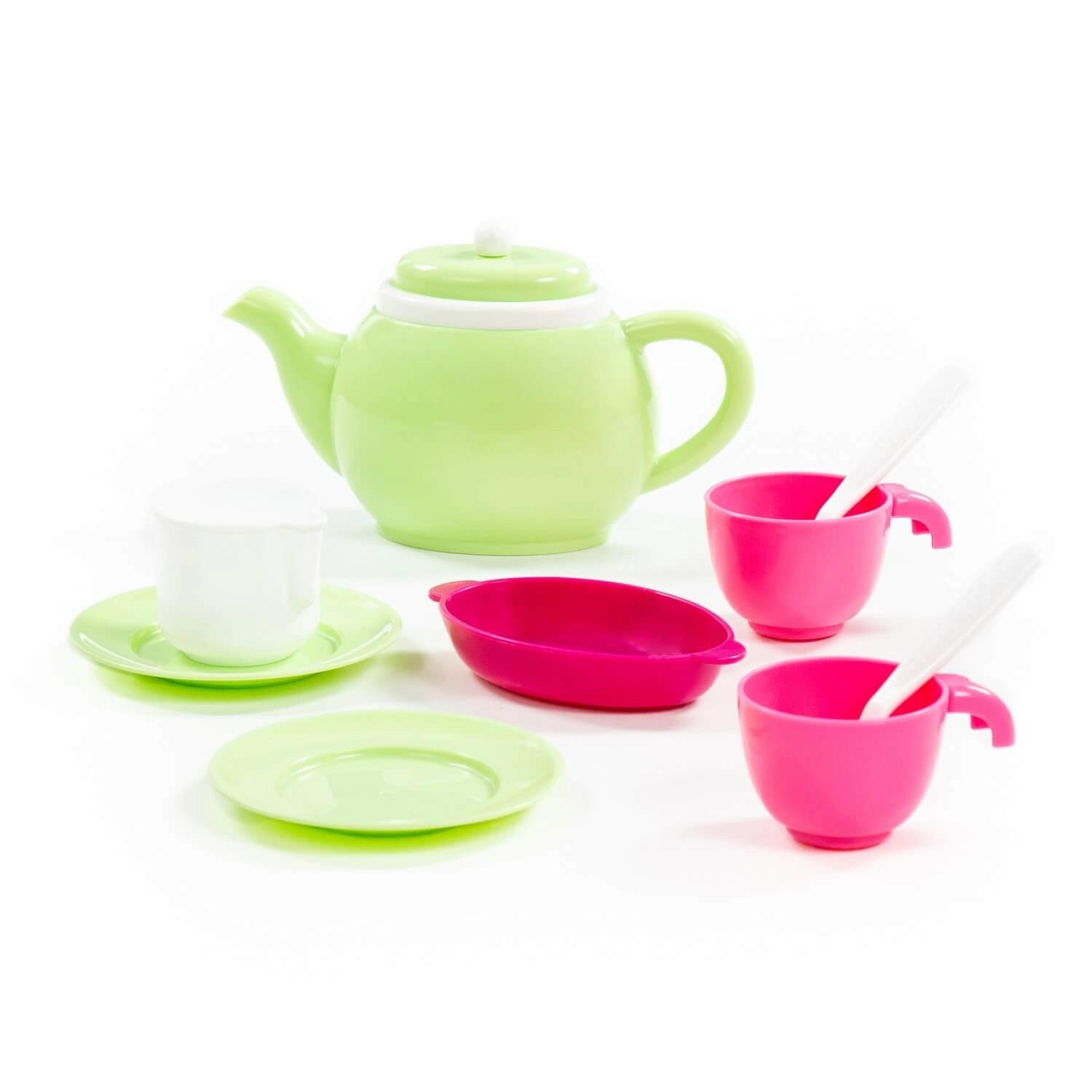 Kompletní set s konvičkou, šálky, podšálky a lžičkami umožní dětem napodobovat dospělé a pořádat propracované čajové party.