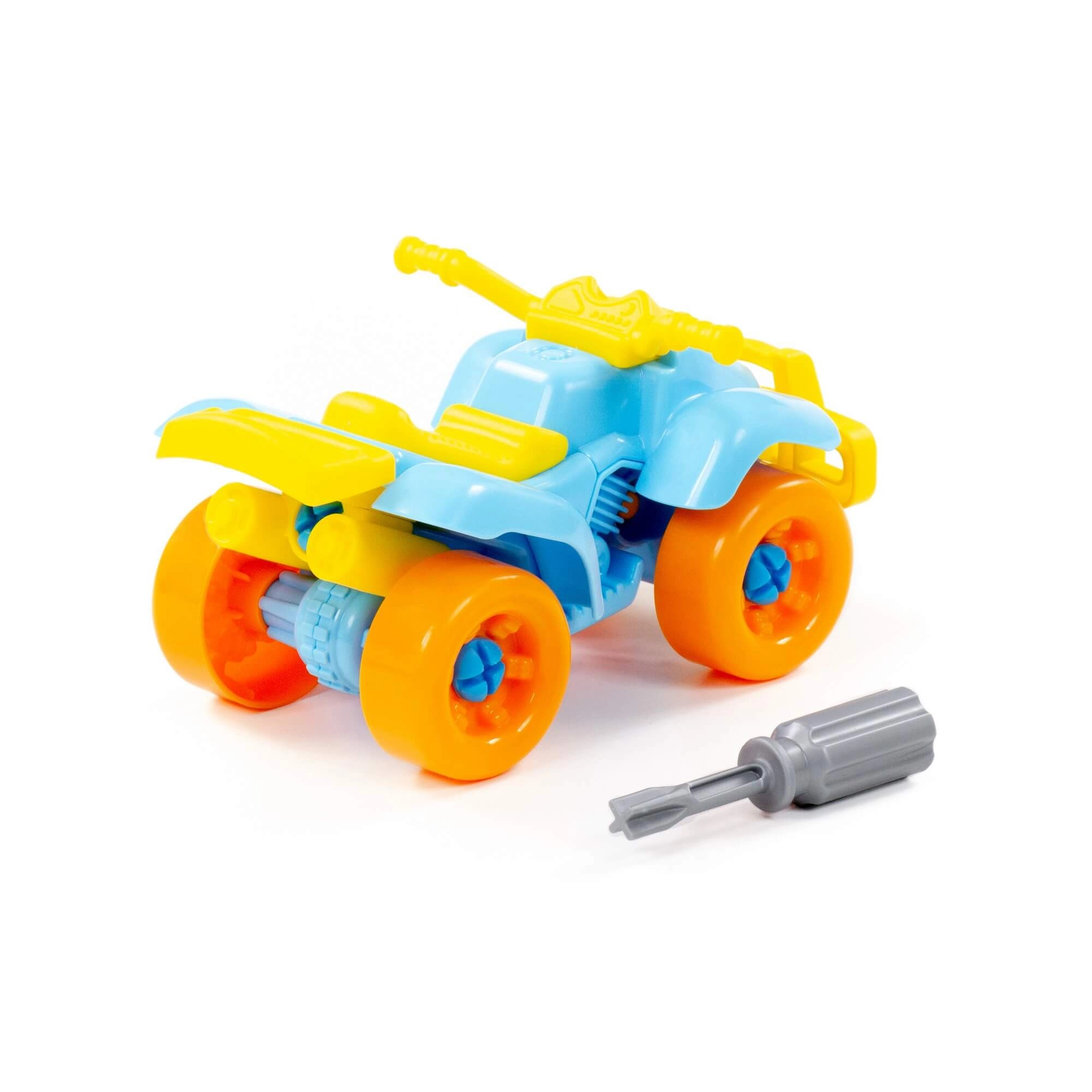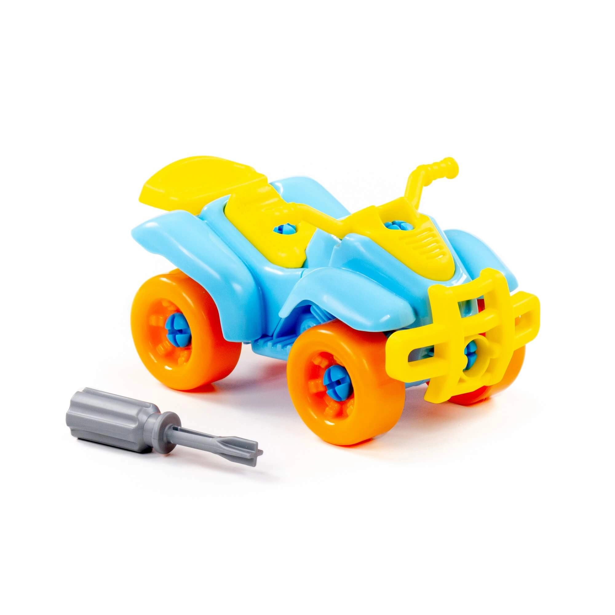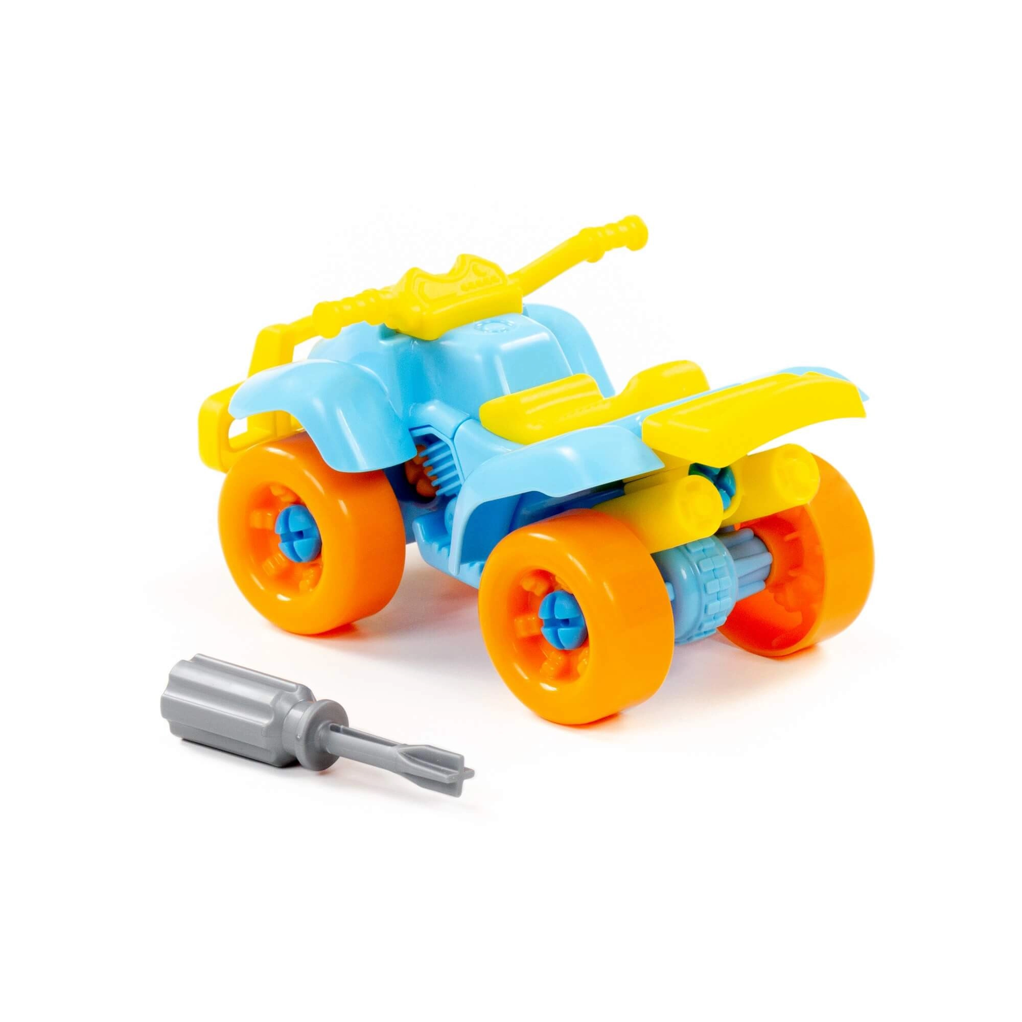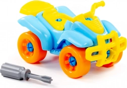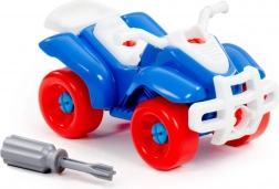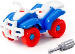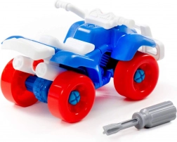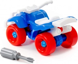 Součástí je dětský šroubovák. Děti si snadno procvičí jemnou motoriku a logiku při opakovaném skládání čtyřkolky.