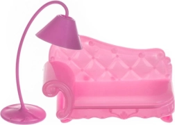 Kompletní sada zahrnuje panenku a širokou škálu nábytku: postel, pohovku, křesla, lampu, skříň, stůl a židle, koupelnu s vanou a sprchou i zábavné hudební nástroje. Odolné materiály a jednoduchý DIY montážní systém zajišťují stabilitu a bezpečnou hru.