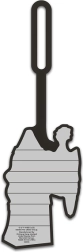 Na zadní straně je přehledné políčko pro vyplnění jména, telefonu a adresy pro rychlé vrácení zavazadla.
