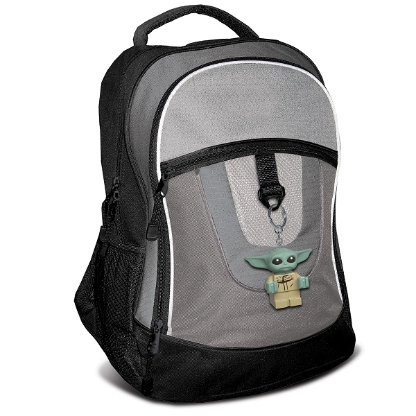 Detailní minifigurka GROGU s ikonickými velkými oušky a potiskem trupu je stylovým doplňkem pro klíče, tašku i školní batoh.