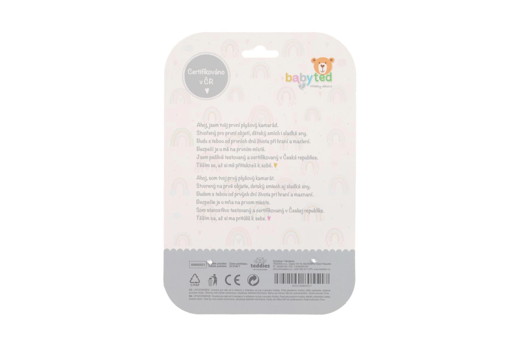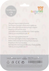 Po stisku hračka vydává příjemný pískací zvuk, který miminko zabaví a podpoří jeho sluchovou stimulaci.