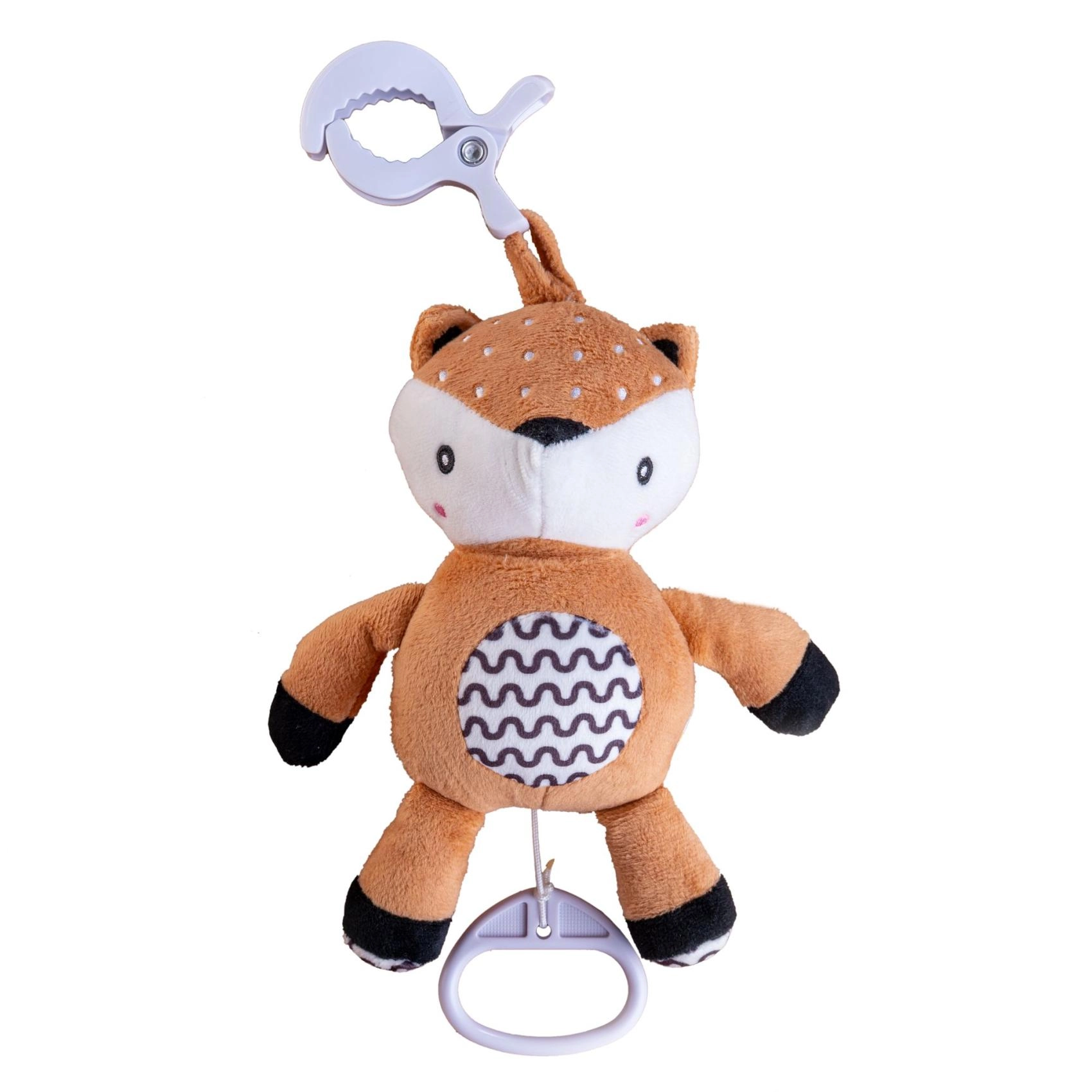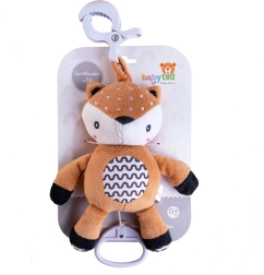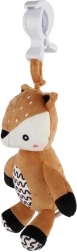 Snadné upevnění zajišťuje odolný závěsný klip, takže srneček může doprovázet vaše miminko v kočárku, autosedačce, na postýlce nebo na hrazdičce. Kontrastní vzorování na bříšku a jemné detaily podporují rozvoj zrakového vnímání a jemné motoriky.