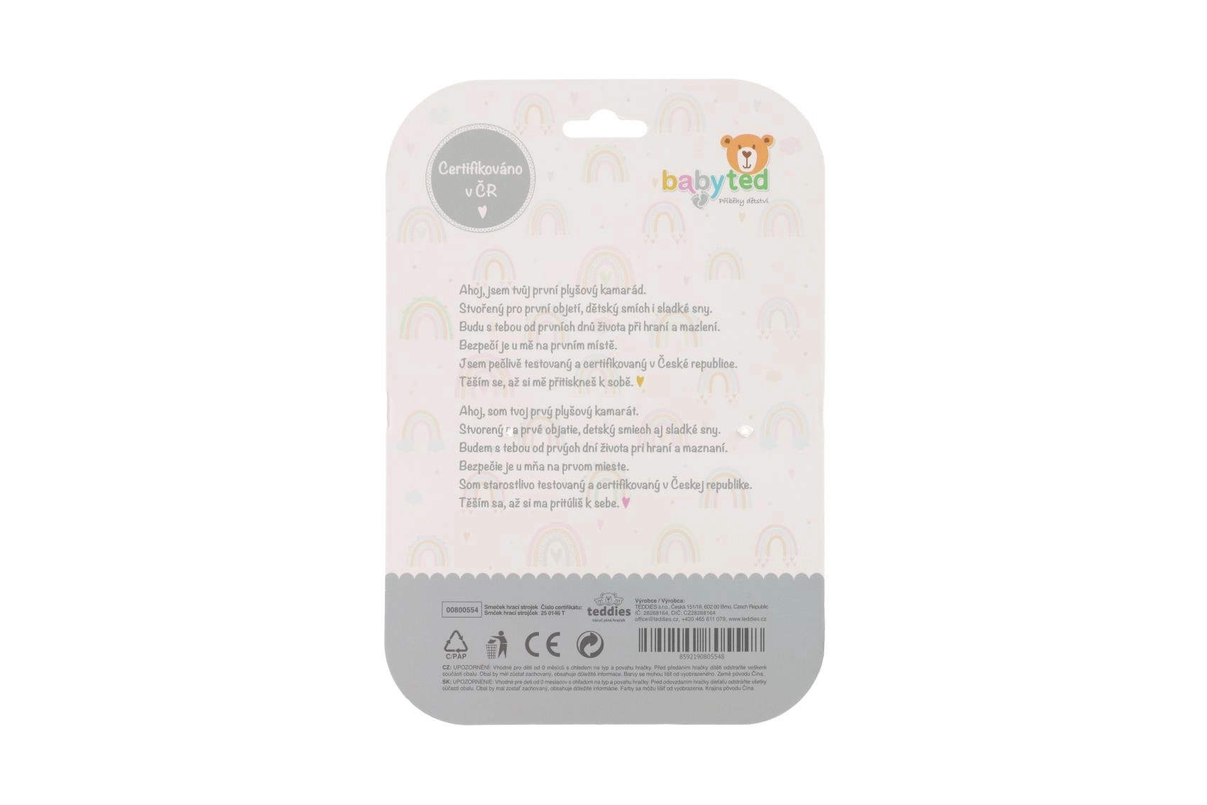 Hebký materiál je příjemný na dotek, zatímco kontrastní vzory na bříšku podporují vizuální vnímání novorozenců.