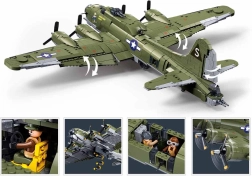 Stavebnice SLUBAN Model Bricks věrně ztvárňuje legendární bombardér BOEING B-17G, přezdívaný „Létající pevnost“. Díky realistickým proporcím a délce modelu cca 52 cm vynikne každý detail – od olivově zeleného zbarvení s americkým označením po průhledný kokpit. Kvalitní ABS plast zaručuje pevnou a trvanlivou konstrukci vhodnou jak na hraní, tak na vystavení.