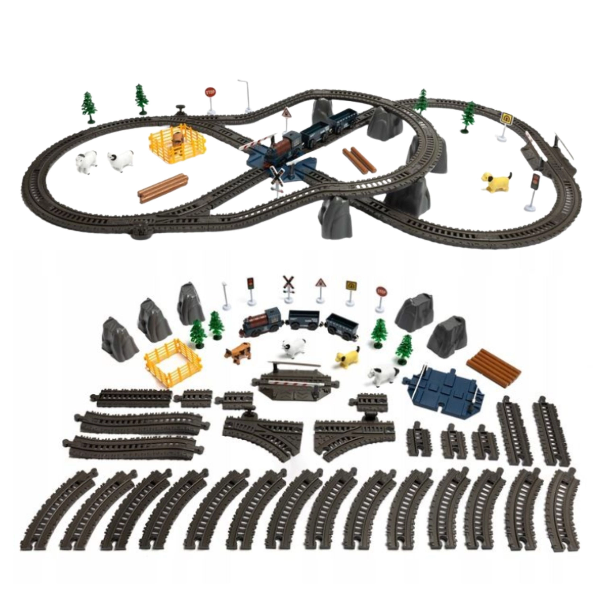 Sestavte si jednoduché okruhy i složité trasy se svěrnými spojkami, výhybkami a smyčkami. Děti mohou nakládat figurky zvířat do vagonů, řídit provoz na přejezdu a rozvíjet tak koordinaci a logické myšlení. Bezpečná plastová konstrukce je přizpůsobena malým dětem.