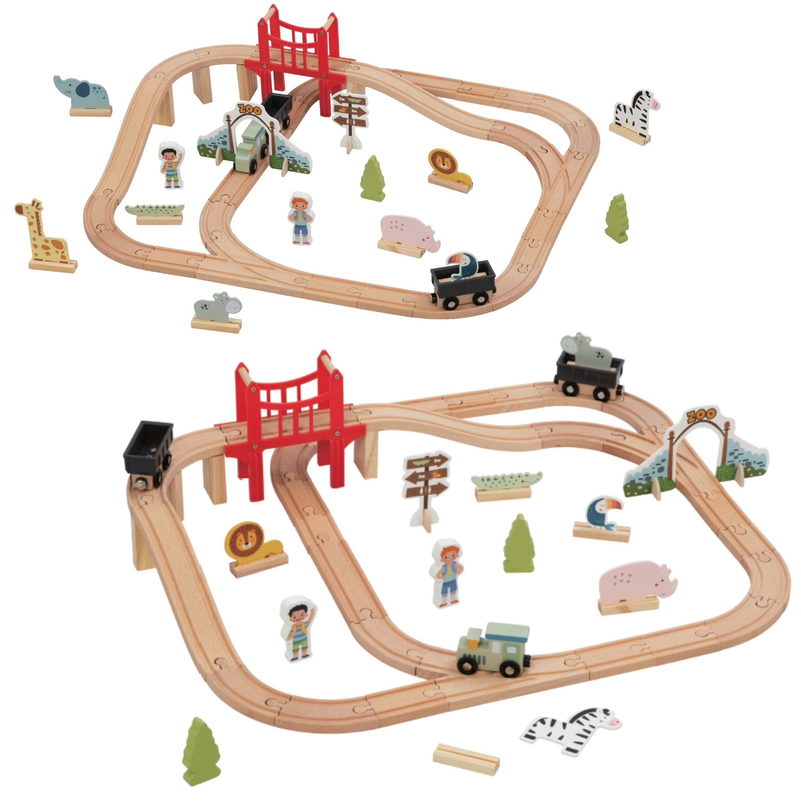 Dřevěná vláčkodráha Woopie Green přináší do dětského pokoje kouzlo zoo a hodiny tvořivé hry. Vláček s vagónky spojenými magnety projíždí kolem žirafy, slona, lva i zeber, přejíždí vyvýšený most a vjíždí skrz vstupní bránu. Díky variabilním kolejím si děti snadno poskládají trať přesně podle své fantazie.