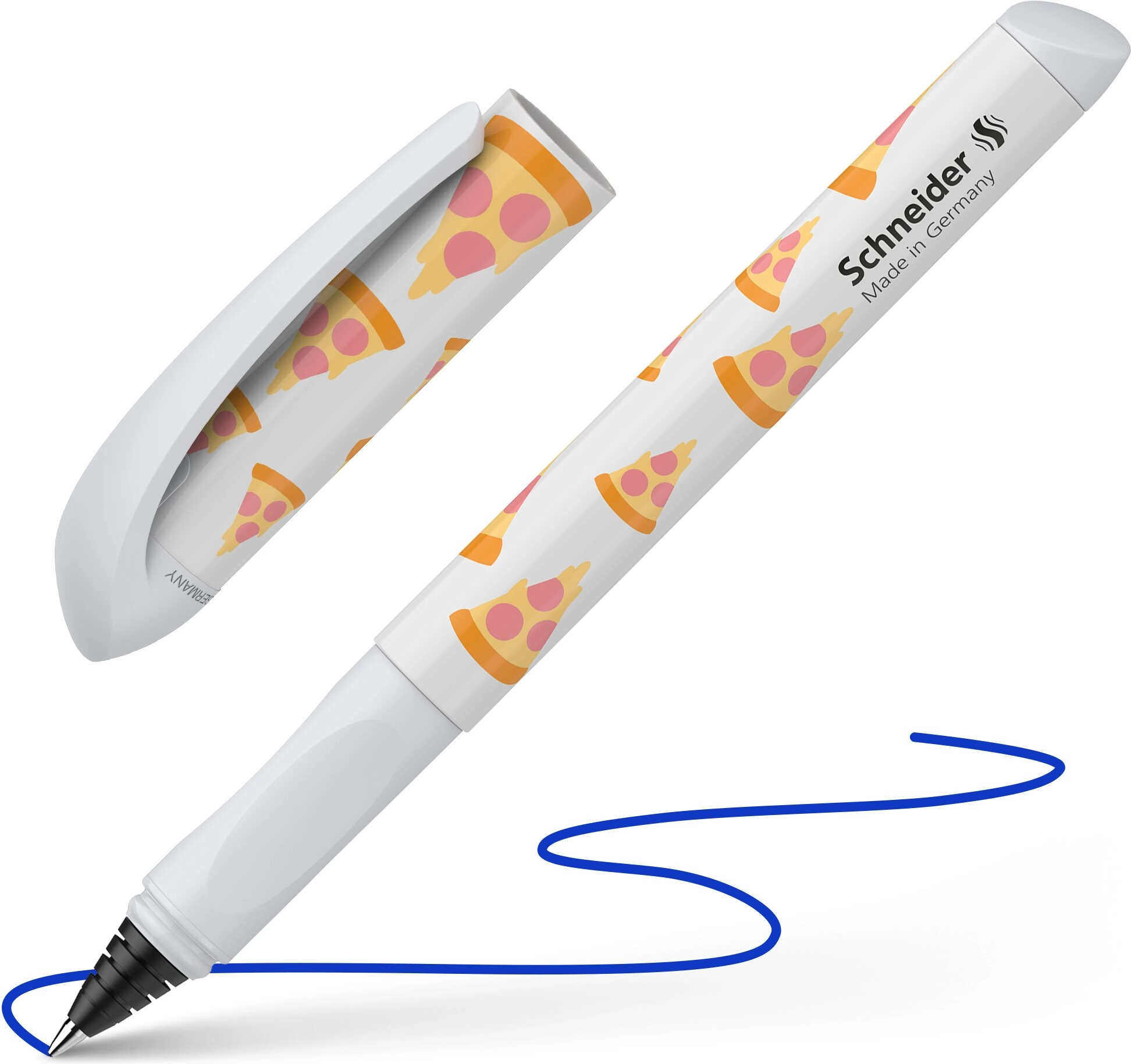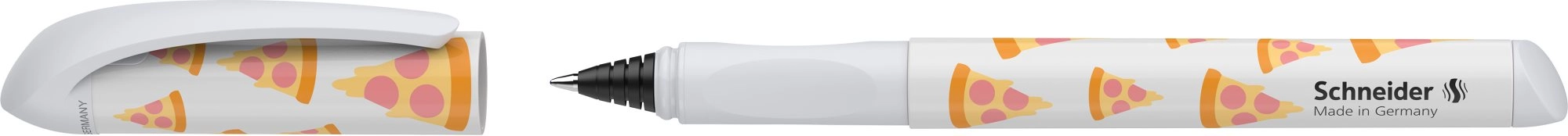 Stylový školní a kancelářský roller Schneider Voice Pizza nabízí pohodlné psaní díky ergonomické úchopové zóně, je vhodný pro praváky i leváky a potěší hravým designem s motivem pizzy.