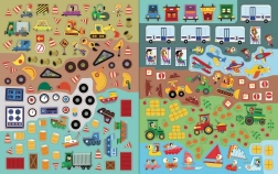 Objevte svět vozidel na silnici, ve vodě i ve vzduchu s bohatě vybavenou knihou, která nabídne dětem hodiny tvořivé zábavy. Děti budou doplňovat bagry, hledat rozdíly, počítat kužely nebo vybarvovat traktor a přitom si nenásilně procvičí pozornost a soustředění.