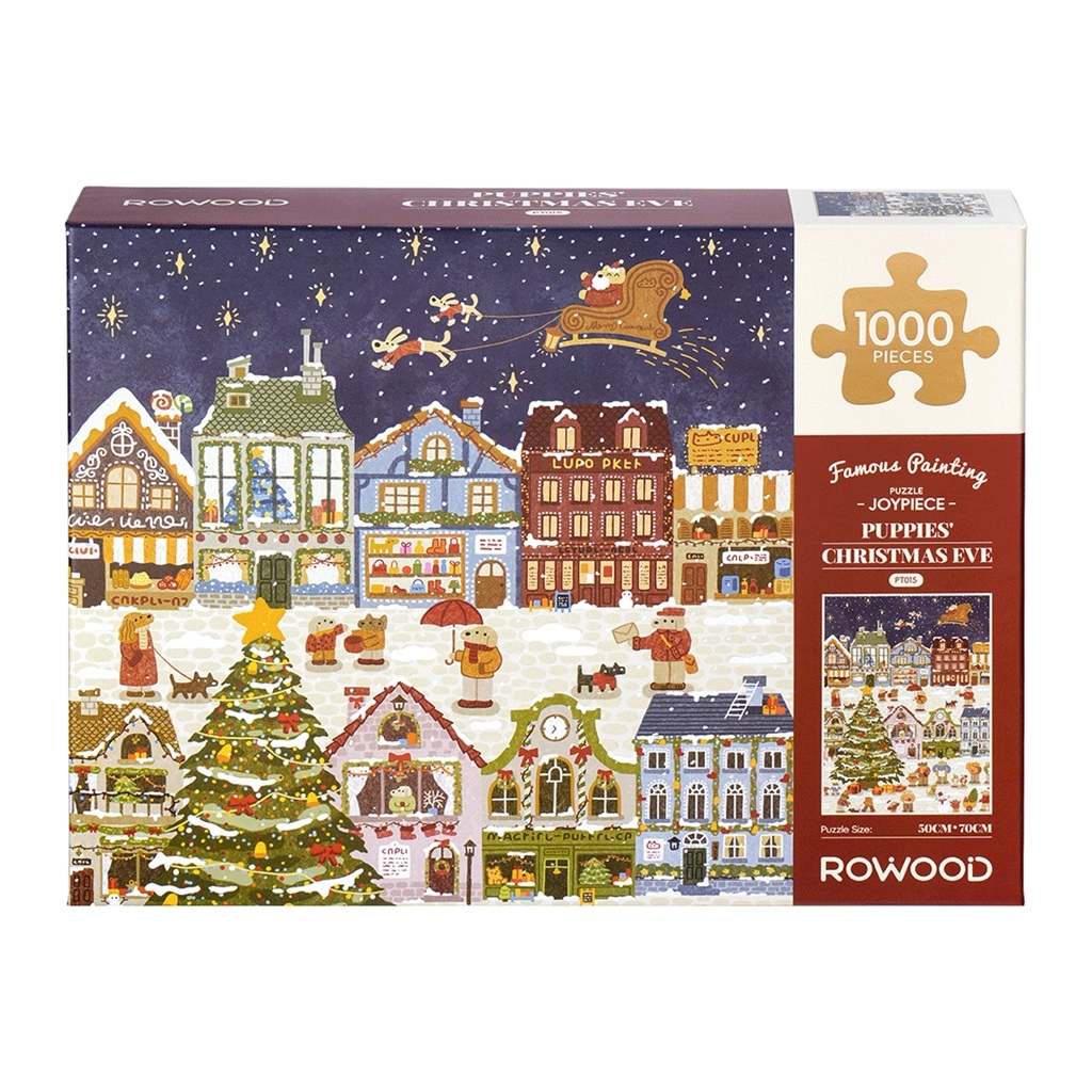 Užijte si kouzlo Vánoc s puzzle RoboTime s motivem štěňat v adventním městečku. Nabízí 1000 precizně vyřezaných dílků, prémiový potisk a vysokou odolnost proti oděru pro opakované skládání. Díky přesně padnoucím dílkům je skládání plynulé a zábavné – skvělé pro rodinné chvíle i jako originální vánoční dárek.