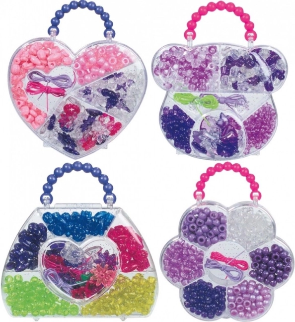 Vše je přehledně uloženo v praktickém plastovém pouzdře s 4 různými tvary. Barvy a tvary korálků i tvar krabičky se vybírají náhodně, takže každá sada je překvapením.